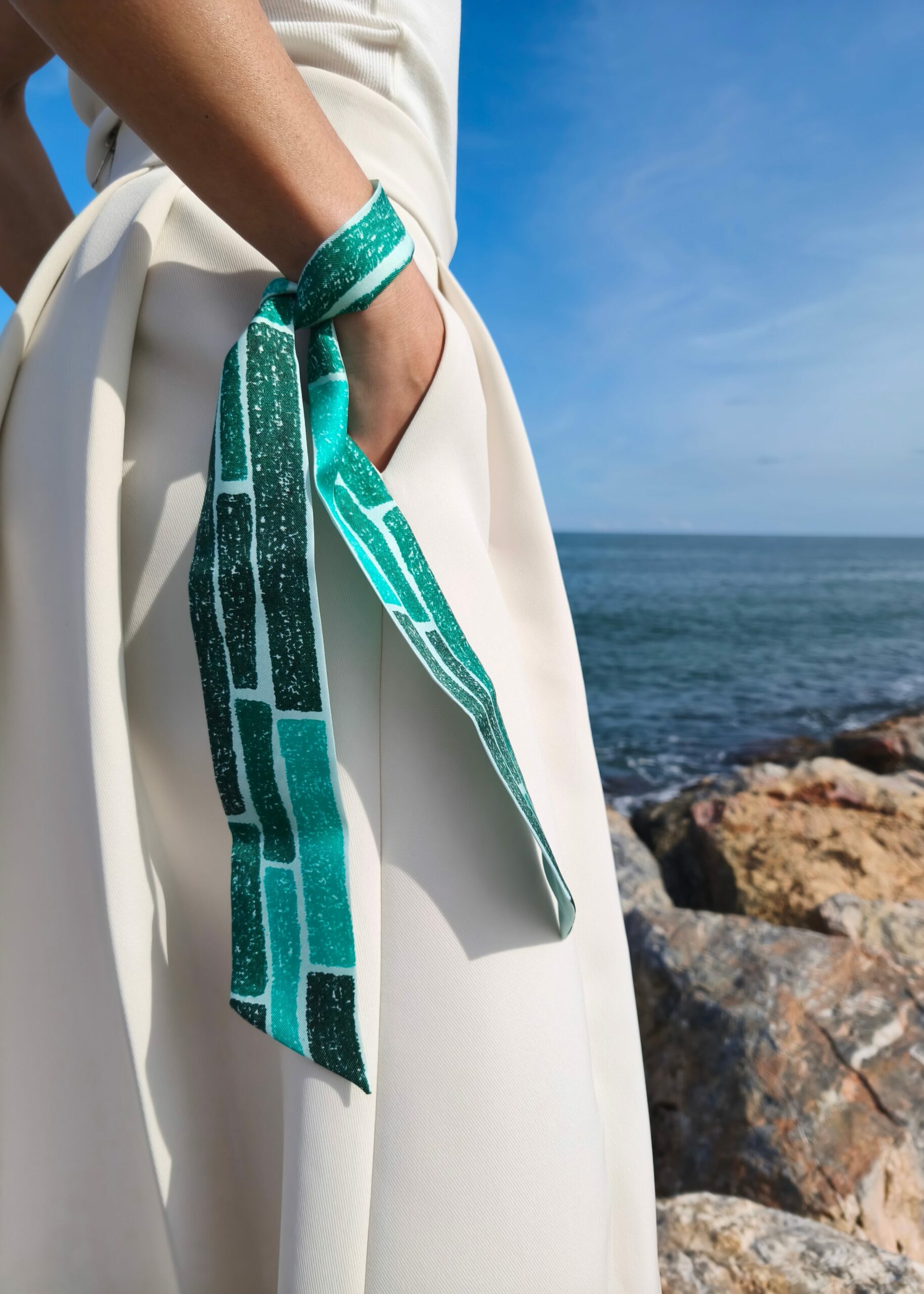 Chaque bandeau Sérée de Roch est une œuvre à part entière. Son motif artistique original apporte une touche de sophistication immédiate à toutes vos tenues. La qualité supérieure de la soie naturelle sublime les couleurs et garantit un tombé parfait, quelle que soit la façon dont vous le portez.