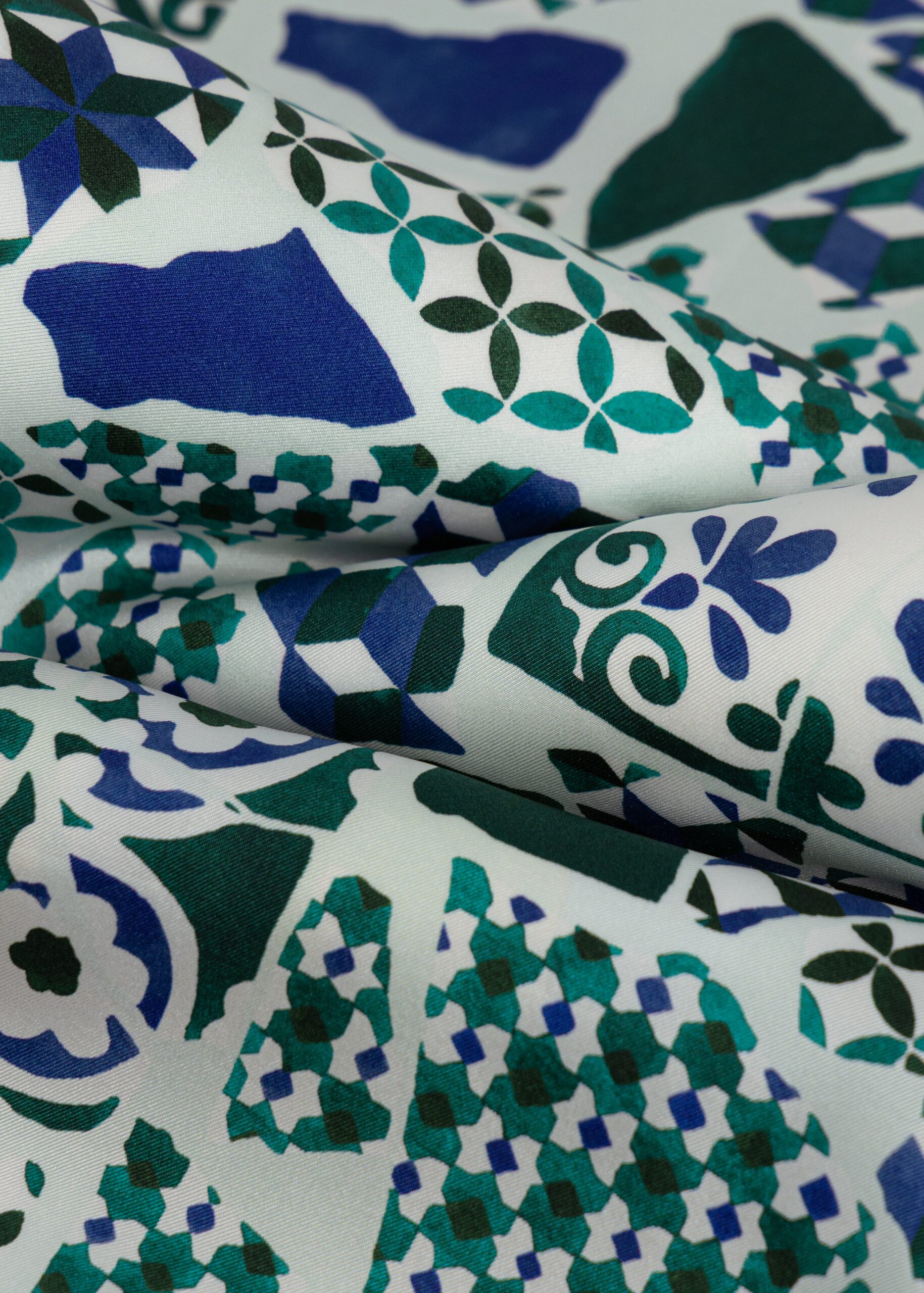La palette joue sur une harmonie froide et lumineuse, allant du blanc céladon au vert forêt profond, en passant par le bleu outremer et le vert jade soutenu. Une gamme qui cite directement les céramiques vernissées de Gaudi, entre ciel méditerranéen et végétation catalane.